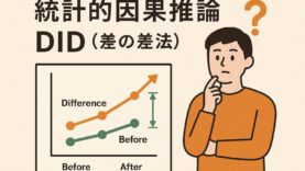 統計学 統計的因果推論とDID(差の差法)とは? 統計的因果推論とは、「ある施策や出来事が、本当に結果に影響を与えたのか?」を科学的に検証する方法です。たとえば「新しい広告キャンペーンを打った結果、売上が伸びたのか?」を単なる相関ではなく、因果関係として明らかにするのが目的です。 2025.09.21 統計学